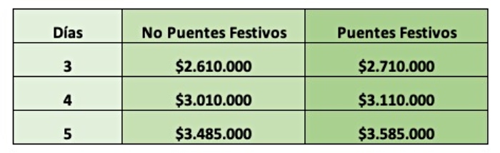 - Duración: 3, 4 (Recomendado) o 5 días